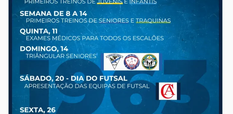 - Semana de 1 a 7: arrancam os primeiros treinos dos Juvenis e Infantis! Hora de mostrar energia e vontade no regresso à quadra!